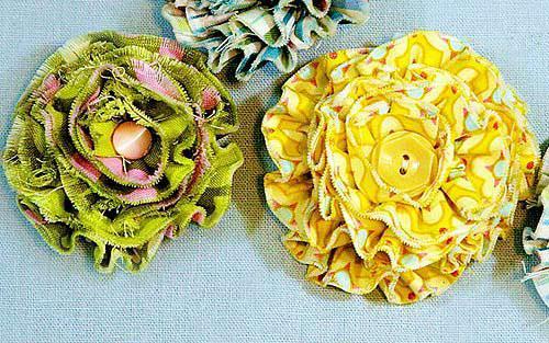 También podemos utilizar pequeños retales para hacer flores de tela con las que realizar broches o collares. Con estas flores podemos también adornar una diadema, personalizar unas zapatillas, o decorar una cesta de paja ¡quedan bien en cualquier parte!Vía: Por cuatro cuartos
