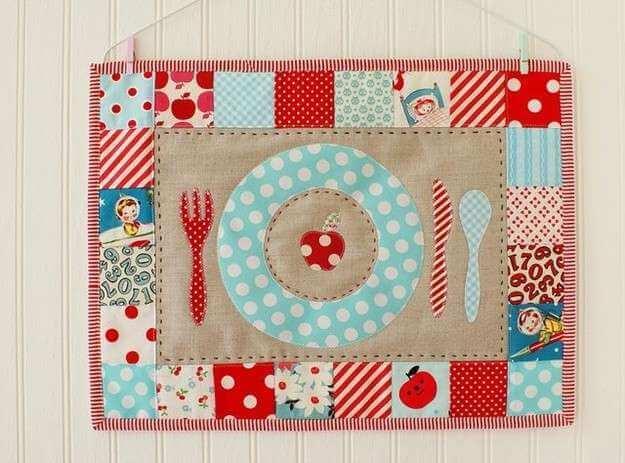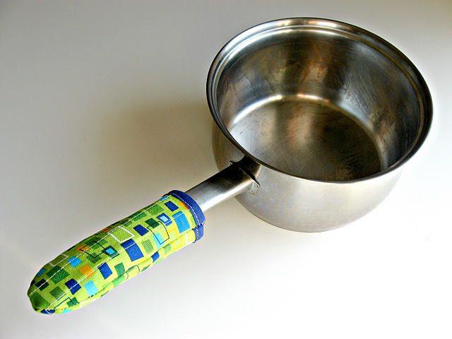 Puede ser una funda para proteger el mango de cazos y sartenes, unas manoplas, unas agarraderas o un mantel individual. Hay un montón de ideas para hacer manualidades con retazos de tela que podemos aplicar en la cocina. Si vas a realizar accesorios que vayan a estar en contacto con zonas calientes, tienes que tener en cuenta que hay que acolchar los tejidos, para evitar quemaduras.Vía Show, tell, share