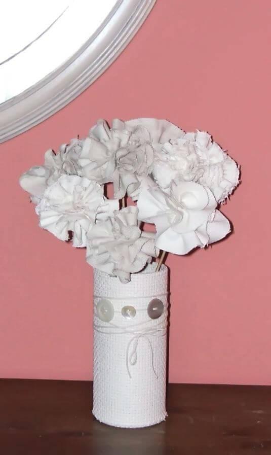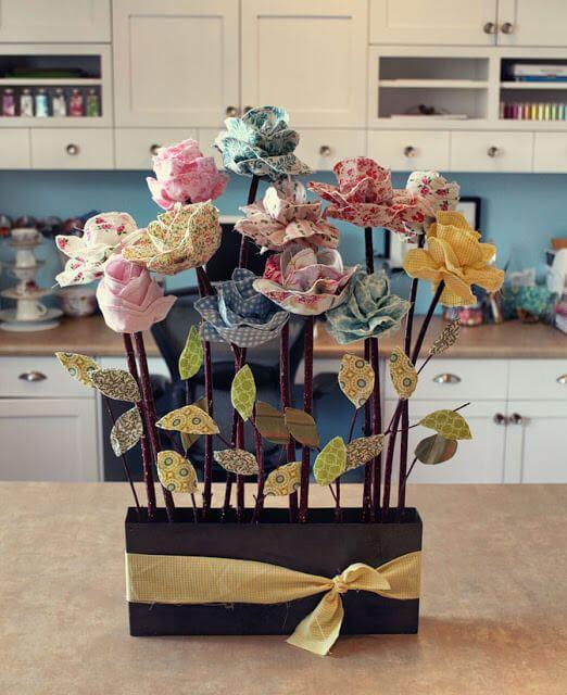 Comenzamos con una idea decorativa que quedará bonita en cualquier rincón de tu casa ¿Que te parece decorar con flores de tela? Es una propuesta de Snowy Bliss y me encanta el resultado. Además quedan preciosas tanto en un jarrón formando un ramo cómo alineadas en una jardinera y lo mejor de todo es que son facilísimas de hacer y nunca se marchitan.Esta idea de las flores con retales me gustó tanto que realicé mi propio ramo de flores de tela utilizando trozos de un muestrario de tapicería.