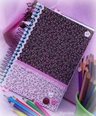 Una de las manualides con retazos que más me gusta es la personalización de libros y cuadernos. Y quien dice libros y cuadernos dice agendas, álbumes de fotos, carpetas, libros de firmas…Vía: Karoles