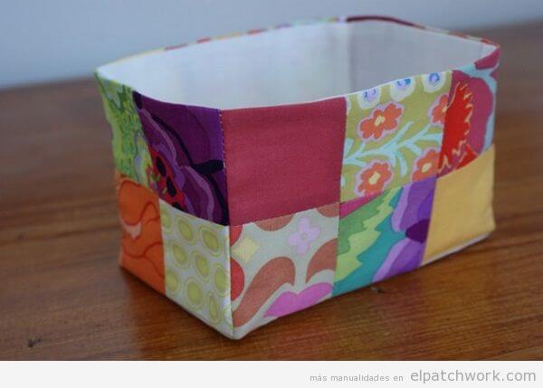 Si te gusta mantener el orden en casa, aprovechar los retales para hacer cestas y contenedores te va a encantar. Puedes coser estas cestas con la forma y el tamaño que necesites y así adaptarlas a tus necesidades. Si las telas que utilizas para hacer tus cestas son demasiado finas las tendrás que reforzar con entretela o con guata para que adquieran consistencia.Vía: El patchwork