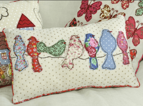 Otra manera de aprovechar nuestros retales de tela es utilizarlos para hacer apliques. Podemos coser apliques sobre cojines, sábanas, toallas, paños de cocina…y el resultado es genial. Aunque la forma más clásica de coser los apliques es a mano con punto festón o con el zig-zag de la máquina de coser, últimamente se ven muchos trabajos realizados con uno o varios pespuntes alrededor del aplique y dejando un pequeño borde que se puede deshilachar. Si te fijas en los pajaritos del cojín de la fotografía verás que están cosidos de esta manera. El resultado es más moderno e informal.Vía: Rex London.com
