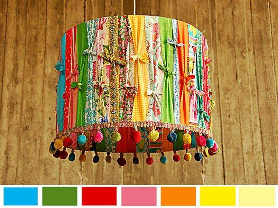 Forrar con retales la carcasa de la pantalla de una lámpara es una manera sencilla y económica de modernizar una pantalla vieja o que ya no nos guste. Es tan fácil como cortar los retales en pequeñas tiras y atarlas a la estructura de la pantalla.Vía: Liveinternet