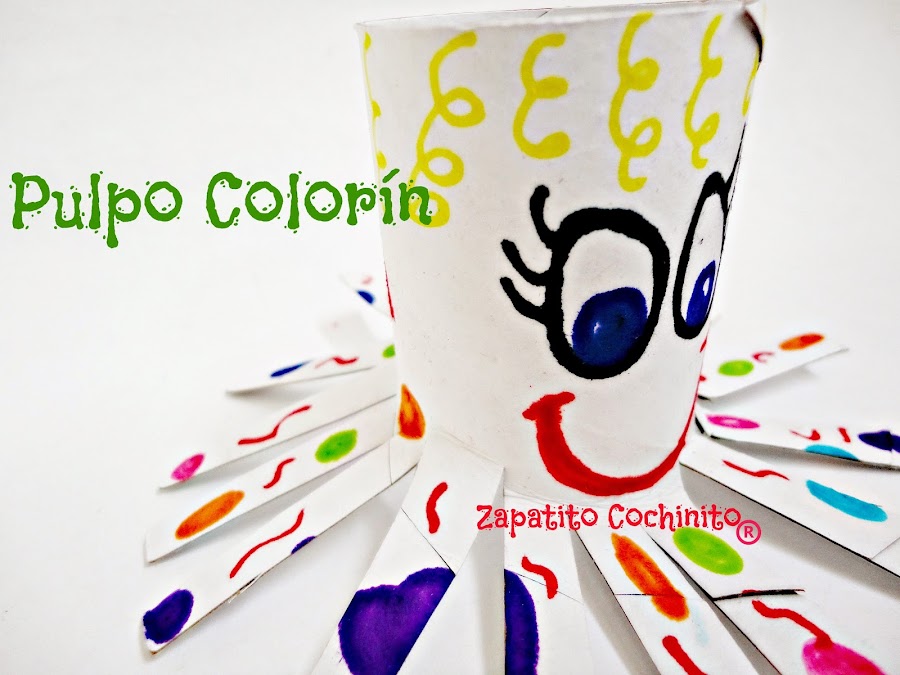 Un pulpo colorido muy fácil de hacer , sólo tienes que pintarlo y cortar , tienes muchas ideas para hacer con tus peques , no tires los tubos de cartón son una materia prima para proyectos geniales !!