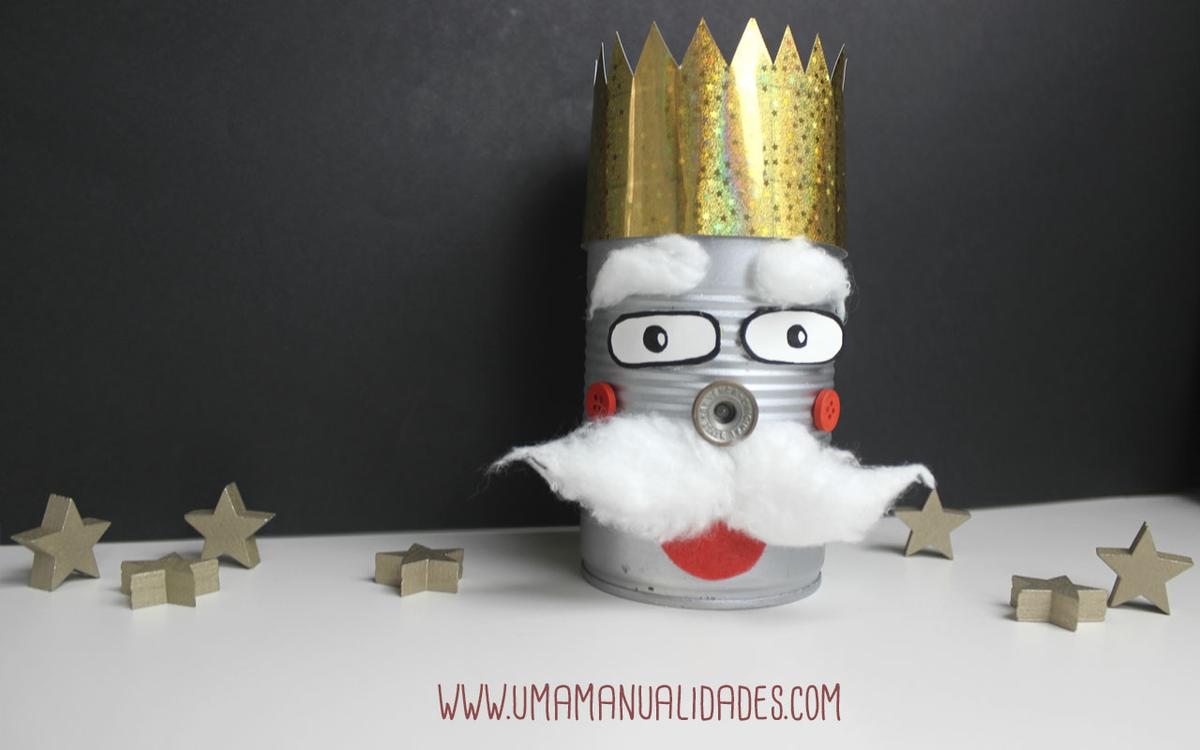 Otra manualidad muy original para decorar que podemos hacer ésta vez con los más pequeños… es éste rey mago de lata que queda súper divertido y que podemos hacer utilizando elementos reciclados como botones o cosillas que tenemos por casa.