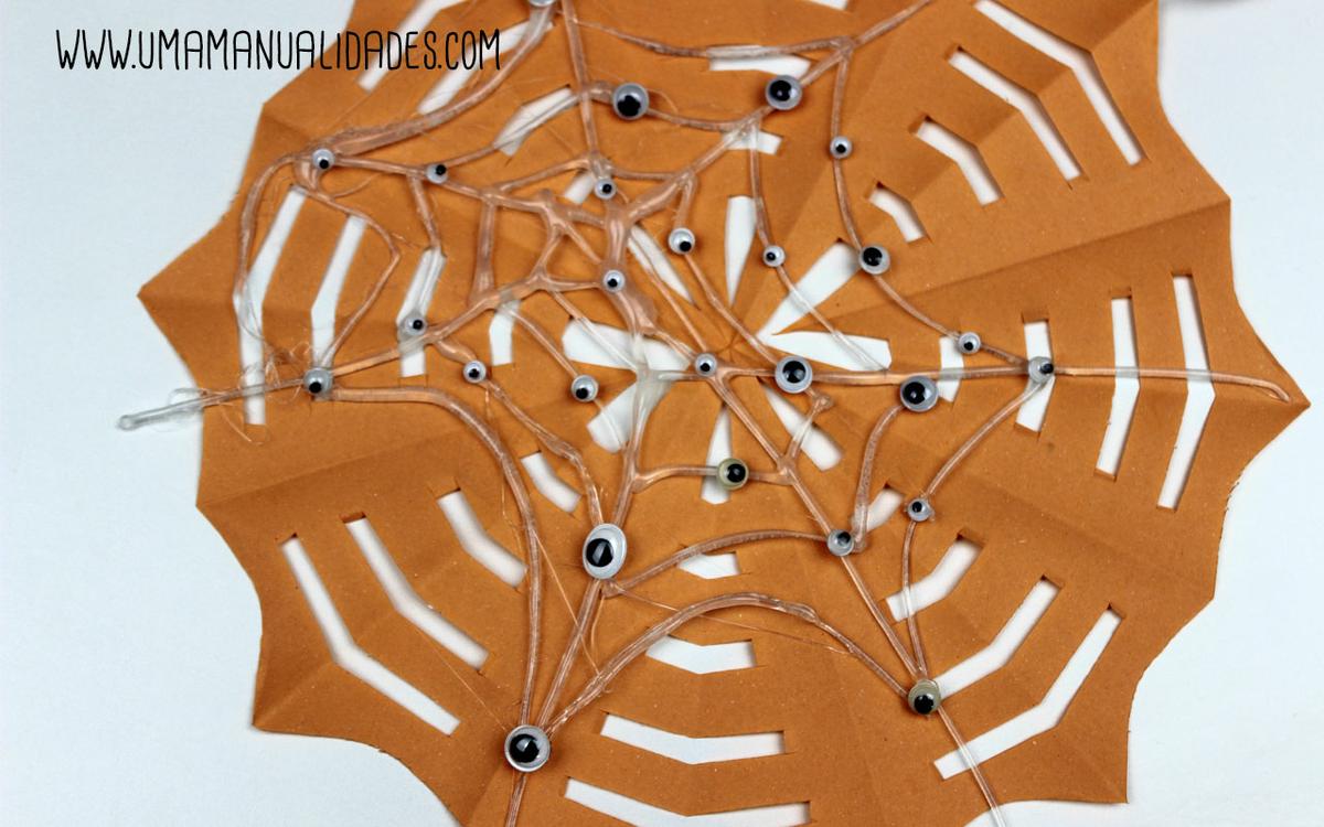 También con papel o cartulina podemos realizar algunos personajes son motivos de Halloween muy sencillos como por ejemplo estas arañas de kirigami que después podemos utilizar para decorar o colgar del techo.