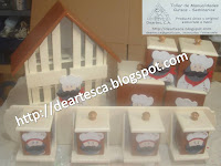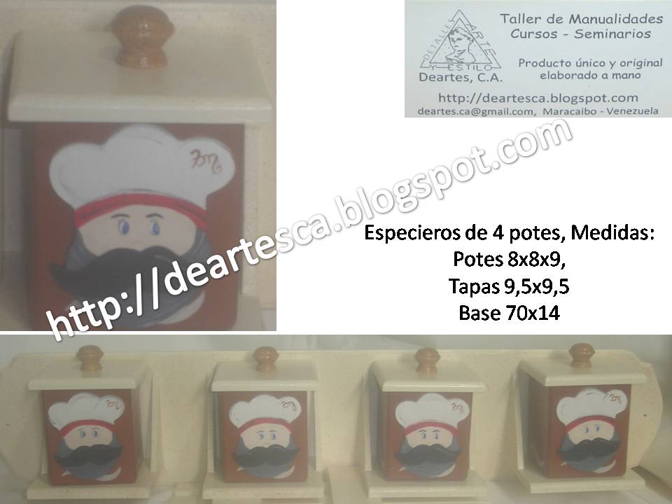 Todo lo que necesitas para organizar tu cocina, este juego consta de Especiero de 4 potes, Huevera para 30 huevos y juego de 4 potes. Todos con la figura de un chef...... V E N D I D O S !