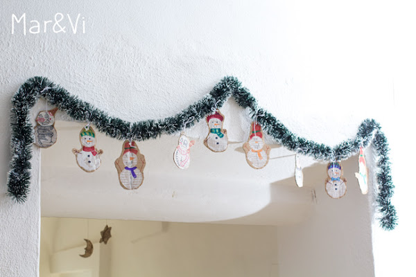 Esta vez decidimos hacer una manualidad de Navidad para decorar la casa y nos decantamos por una guirnalda de muñecos de nieve.