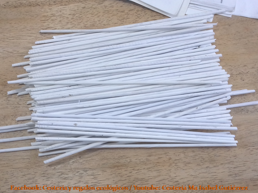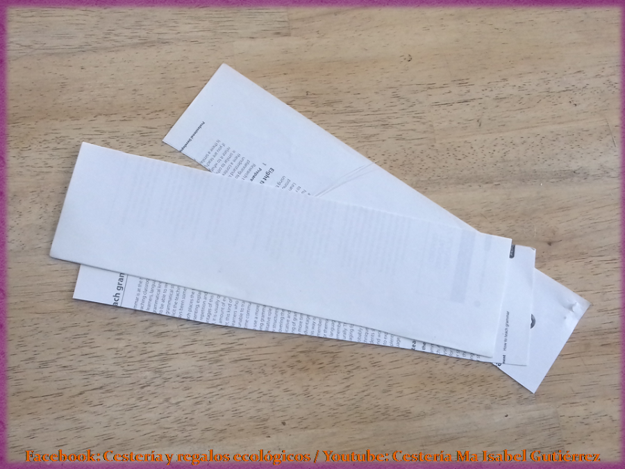 Empezamos por cortar las hojas (podemos tomar 2 o 3 a la vez), y cortarlas a lo largo, en 3 tiras de aproximadamente 7 cms., de ancho, no necesitas medir, poco mas o poco menos no importa...