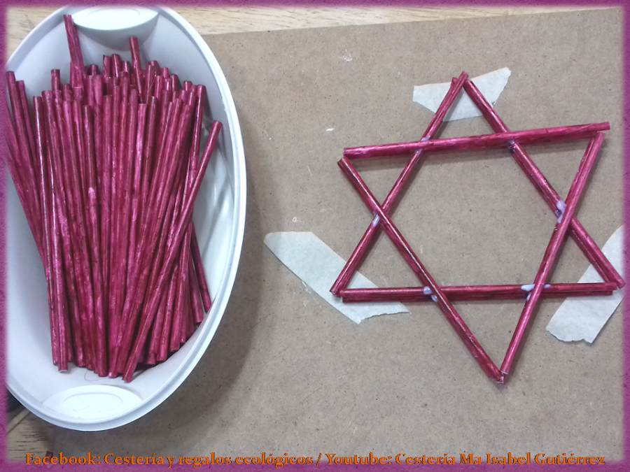 De manera opcional, o si no tienes pinturas, podemos dejar los tubitos de papel en color blanco, pero si deseas pintarlos, podemos utilizar cualquier pintura que tengas a mano; el único patrón que seguiremos es formar triángulos como se aprecia en la siguiente imagen...