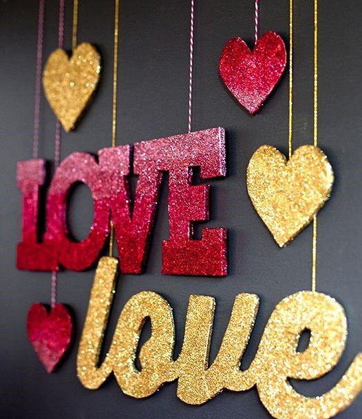 La goma eva escarchada es muy linda y especial al momento de dar una sorpresa, con simples moldes de letras y corazones conseguimos realizar esta linda decoración, en donde se puede acompañar con otros regalos, como pueden ser cajas de dulces, camisas, globos y cualquier otra cantidad de regalos que tengamos a nuestra disposición para nuestra pareja.