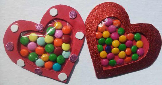 Con fomi podemos hacer unos lindos depositantes de caramelos, chocolates o bombones. Para que estos se puedan apreciar podemos colocar acetato o cualquier material transparente en el centro del corazón, logrando colocar los dulces.