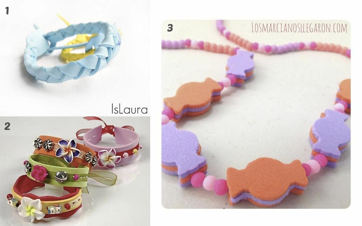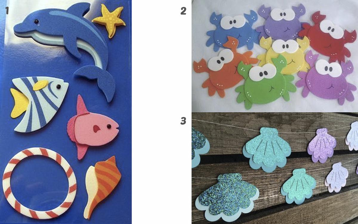 La goma eva es ideal ya que puede mojarse y para las fechas veraniegas es perfecta. Gracias a la amplia variedad de colores que ofrece, una de las manualidades más típicas de verano y más sencillas de hacer con este material, son los animalitos y elementos inspirados en el mar cómo: Estrellas, peces, tiburones, sirenas o conchas.