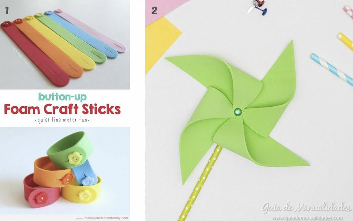 Los molinillos de viento, serán sin duda otro de los clásicos de manualidades en fechas de verano. Y ahora ya no solo podemos hacerlos de papel, sino que la goma eva puede convertirse en un buen material para realizar los. Serán impermeables y al ser un material muy ligero nos permitirá que cumplan su función de una forma eficaz.