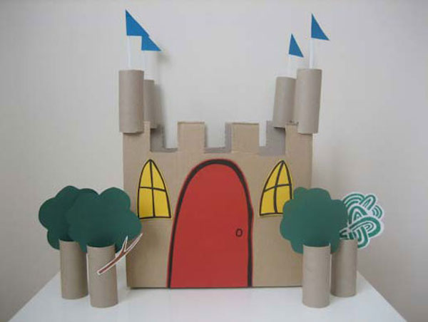 -Un castillo de cartón, donde usamos una caja de cartón, rollos y cartulina.