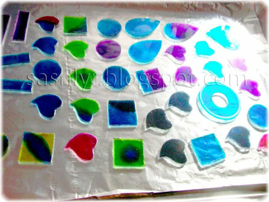 Una colección similar es la fabricada por la amiga EltocadordeCeni. Antes de nada, debemos limpiar los cds y con una tijera raspamos la superficie. Con cuidado, despegamos la capa superior unos 10 centímetros. En la parte inferior, aplicaremos un poco de alcohol ya que habrá una restos de pintura y pegamento. Para finalizar recortamos la figura deseada y la pintamos a nuestro gusto. Si se desea, se puede introducir en el horno para cocer, con la parte pintada hacia arriba.