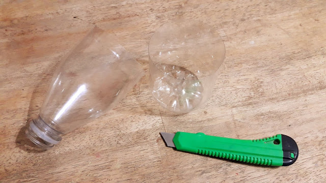 Utilizamos botellas de plástico desechable de las que tengas, del tamaño a tu gusto...