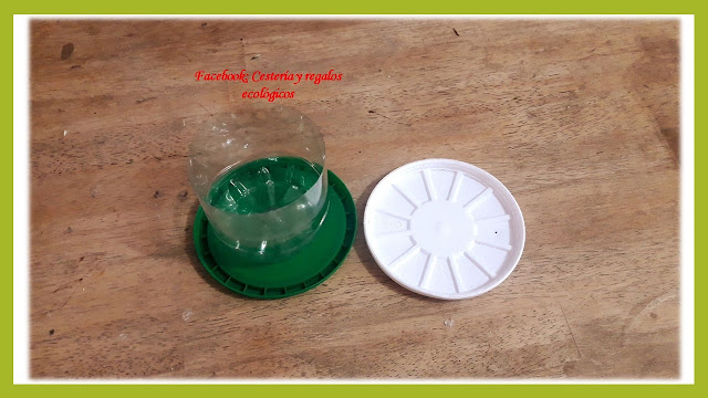 Para el platito vamos a usar alguna tapa de plástico o telgopor..., así que como ves, todo es material re-utilizado...