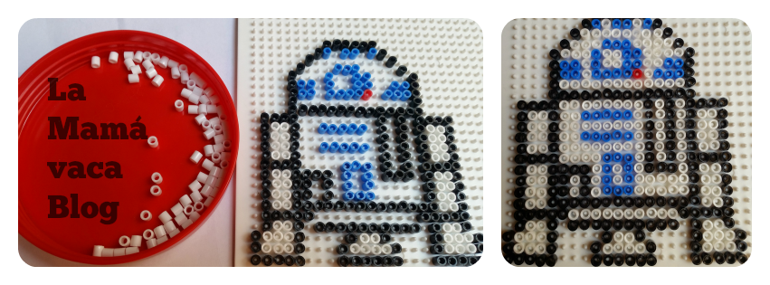Como siempre para elaborar las figuras de hama comenzamos con el contorno de color negro, luego seguimos con el relleno de un solo color y continuamos con el siguiente color y así sucesivamente hasta completar la figura, al completar la figura solo queda poner el papel encima y pasar la plancha con cuidado en ambos lados pero en el blog de lamamavacablog nos explica los paso mas detallados para realizar estas figuras y muchas mas.