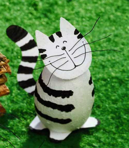 Lindo gatito realizado con el cascaron de un huevo ,el cual fue pintado y pegado cartulina para hacer la cabeza,los pies y la cola.