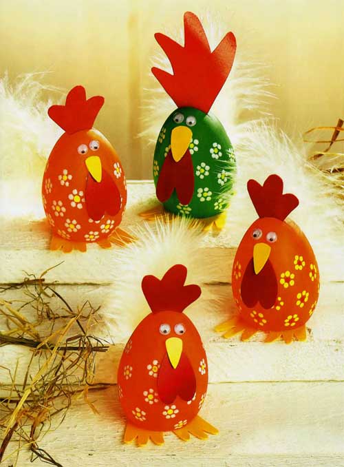 *Decora y pinta con pinturas acrílicas todo el huevo .Pega en cartulina o papel de color las patitas,pico etc del animalito que estés haciendo.