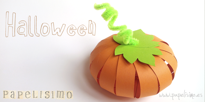 Una manualidad rápida, sencilla y económica es esta calabaza con cartulina. Solo se necesita cartulina, limpiapipas y lo habitual como lapiz, tijeras, pegamento. Puedes ver el molde, el paso a paso y le videotutorial en el blog de Papelisimo.