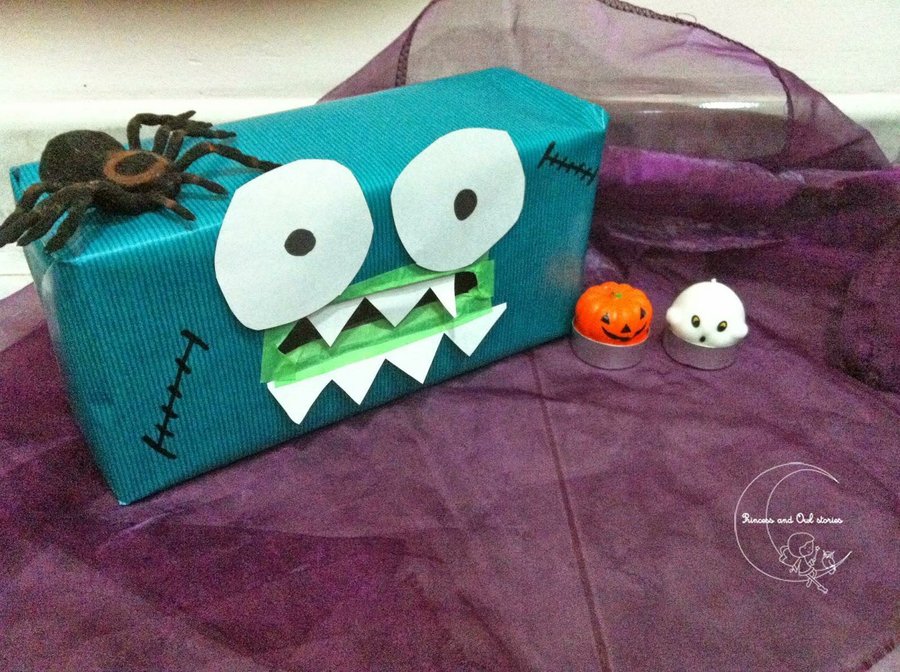 Si por el contrario prefieres una manualidad de Halloween pero de reciclaje, entonces esta idea seguro que te gusta. Vamos a hacer un monstruo con una caja de pañuelos, papel de regalo, una hoja en blanco, whasi tape y un rotulador negro. Puedes ver el proceso en Princess and owl stories.