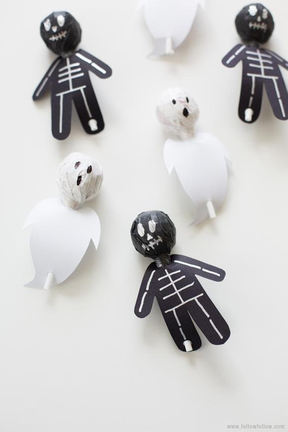 Ah, y por supuesto, no puede faltar el decorar nuestros dulces de truco o trato. Puedes hacer con los peques unos esqueletos y fantasmas para los chupachups, solo se necesita papel de seda, cartulina, celo y rotuladores negro y blanco, además de los chupachups, claro. Puedes descargarte los imprimibles en Una pizca de hogar