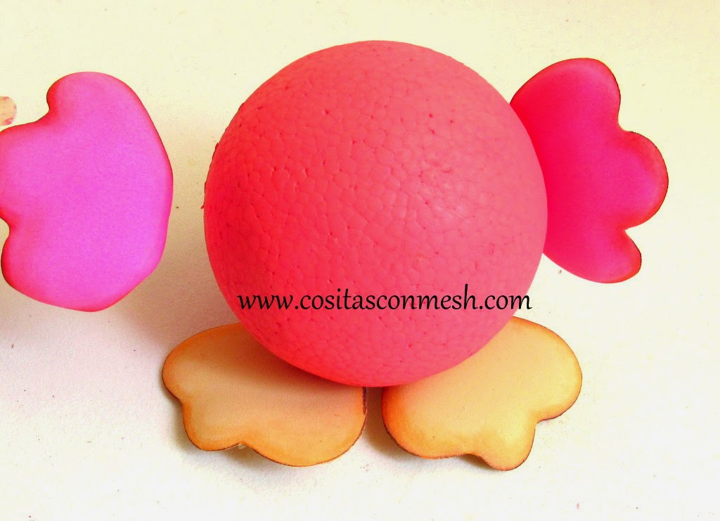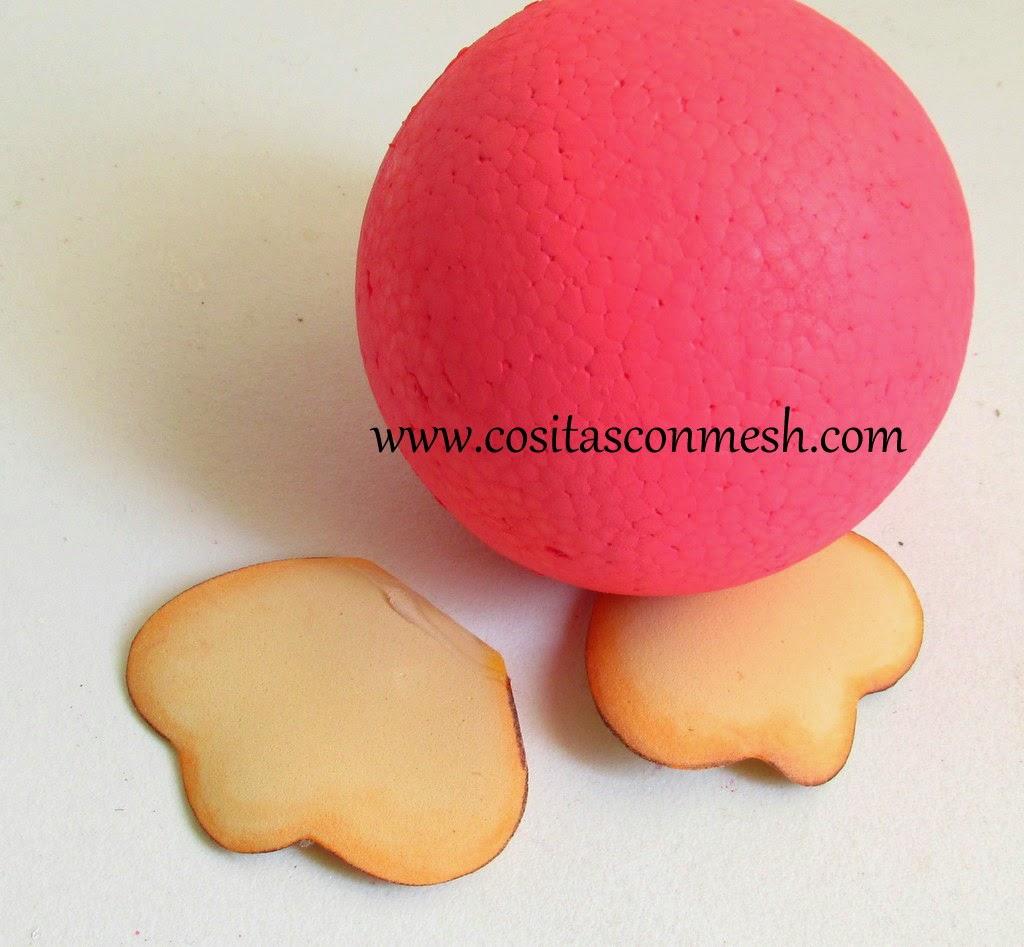 7.-Ahora pegamos en la bola de unicel que viene siendo el cuerpo,cada uno de nuestros moldes.