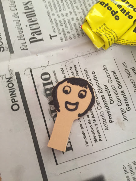 5. Corta una cabeza de goma Eva, dibuja los ojos, la boca y el cabello y procede a pegar