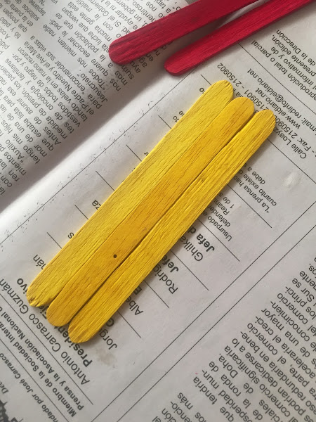 Puedes utilizar los palos en color crudo, los pintados o hacer una combinación de ambos. A continuación, el paso a paso y las fotos del trabajo que hicimos con mi hija.