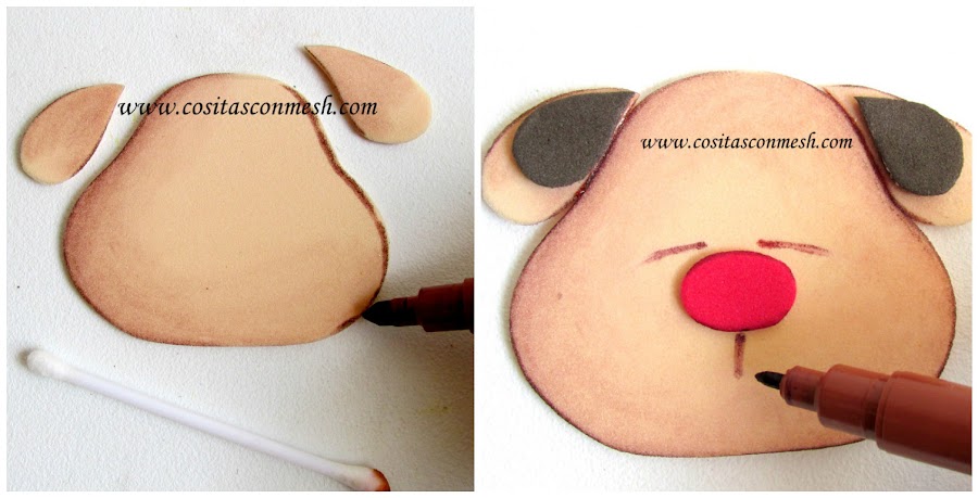 En este caso use foami color piel para hacer la carita, luego con plumón marrón sombree toda la cara, recuerda usar un hisopo para difuminar el trazo del plumón.Otra opción es usar gises.