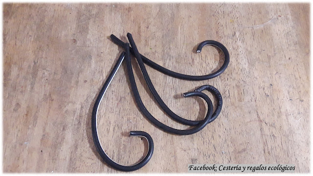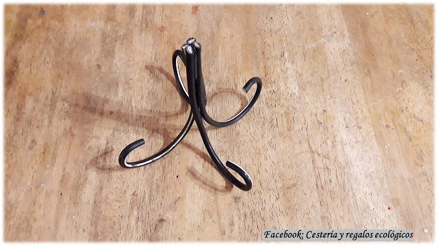 La base, hecha con tramos de cables semejan forja o fierro...