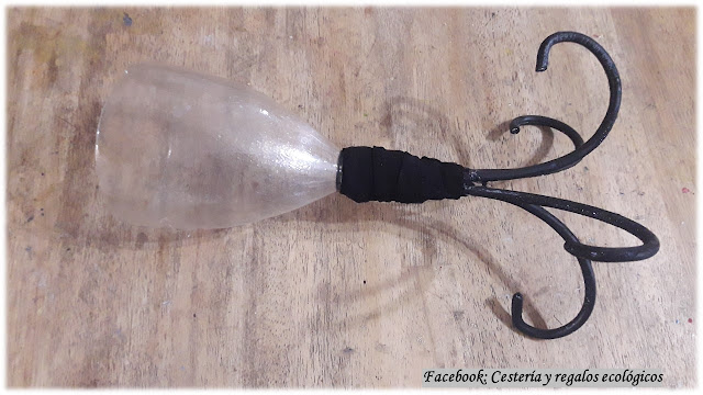 De la botella de plástico aprovechamos el pico, del tamaño a tu gusto...