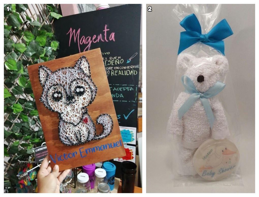Entre todos los modelos de manualidades para bebés baby shower que puedes elaborar, se encuentra una hermosa caja de luces que puedes elaborar y colocarle el mensaje que desees. Se trata de una bonita idea para decorar cualquier rincón del salón donde realices tu evento. Puedes complementar su decoración con un par de peluches tejidos a crochet o algunos juguetitos de madera.Los cuadros caseros también son un bonito elemento para complementar la decoración de tu baby shower y, si los diseñas con motivos originales, podrás usarlos para decorar la habitación del bebé. Asimismo, una linda guitarra en tela, además de ser un lindo elemento decorativo para el evento, será un hermoso juguete o cojín para el pequeño. Al igual que estas tiernas ideas elaboradas con pañales que van desde un sencillo cochecito hasta un divertido buggy.