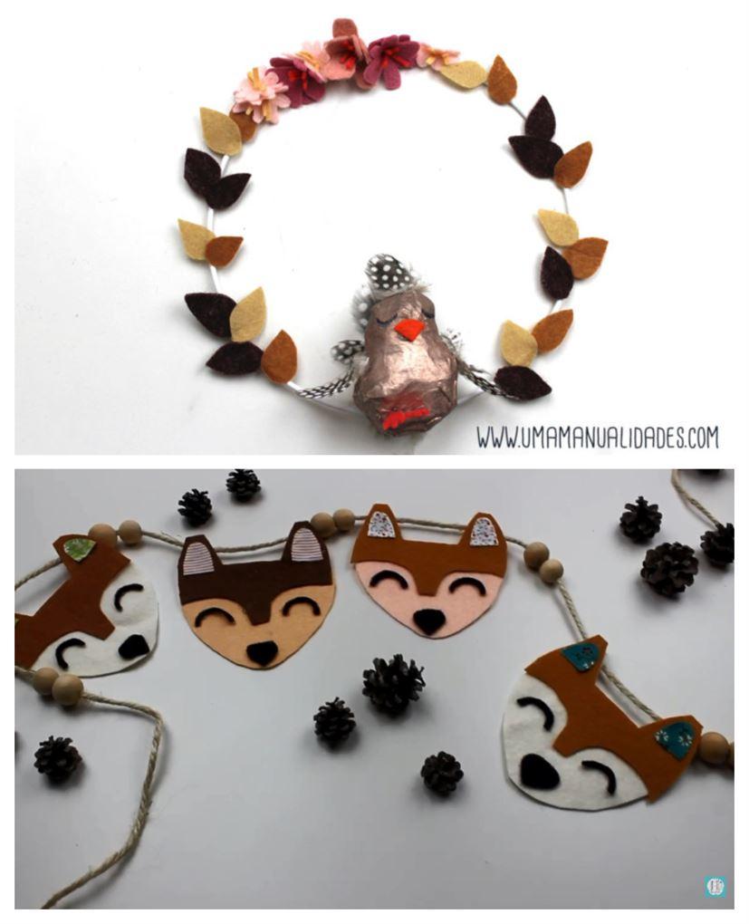 El fieltro es un material perfecto para la decoración de la habitación de los bebés, ya sea en tonos pasteles o vibrantes sus colores suelen guardar una intensidad cautivadora. Además suele mantener su color, su forma, estabilidad y belleza aún después de lavarse delicadamente. En definitiva, es ideal para elaborar manualidades como las que encontrarás a continuación.Puedes inspirarte en una preciosa corona para decorar la habitación del bebé y darle la bienvenida a casa con una bonita decoración. También puedes colocarlo como una decoración para la puerta de su habitación y quedará más bonita si le añades unas letras con su nombre. Esta idea también será muy útil si deseas elaborar un móvil para su cunita; de ella pueden colgar los demás elementos que conformen el adorno.