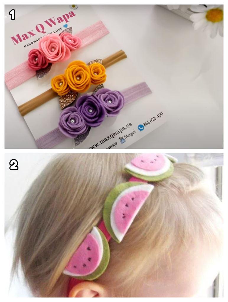 El fieltro también es el material indicado para elaborar cintas y diademas para tus nenas pequeñas. Con este material puedes elaborar un sinfín de figuritas de todos los colores y tamaños. Flores, abejitas, frutitas de colores y muchas figuras más las podrás elaborar con un poco de creatividad y algunos trozos de fieltro de colores.2 https://www.pinterest.es/pin/172473860716943707/