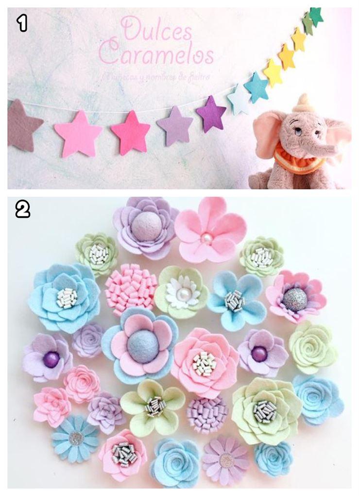 Si se trata de una nena, puedes elaborar flores en fieltro de los colores que prefieras y elaborar una linda corona para decorar la pared o la cabecera de su camita. También puedes armar una guirnalda de estrellitas. En este caso, los colores pasteles pueden ser una excelente opción. ¿Qué te parecen estas ideas para inspirarte?