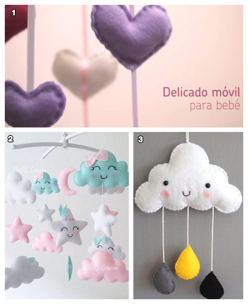 Para elaborar móviles las ideas originales sobran, es muy difícil que alguna idea sea totalmente idéntica a otra teniendo en cuenta que su composición se presta para que un simple detalle lo convierta en un adorno totalmente único y original.Si bien es cierto que algunos móviles comerciales incorporan hasta melodías para ayudar a los niños a dormir, con un móvil de fieltro hecho a mano podrás dominar la atención de tus bebés pequeños en la medida que lo desees. Y si se trata de música, puedes colocar en su habitación una barra de sonido con melodías súper relajantes que, junto al vaivén del móvil le harán tener los más bonitos sueños. Te dejamos a continuación algunas ideas que podrás reproducir en casa para cautivar la atención de tu bebé.