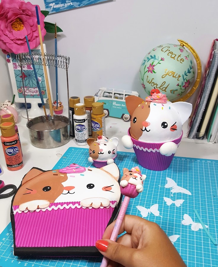 Cada una de ellas forman parte de un conjunto de escritorio a juego con el sacapuntas o tajador que hicimos en uno de los vídeos de la vuelta al cole del año pasado y que tanto os gustó.