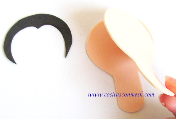 2.-Luego de transferir el molde en foami, procedemos a armarlo.Primero pegare las dos piezas de la carita, dejando solo la parte del cuello abierta, ya que por ahí meteré el lapiz.Luego pegamos el cabello.
