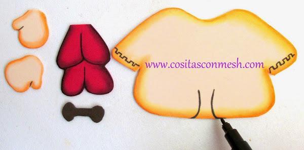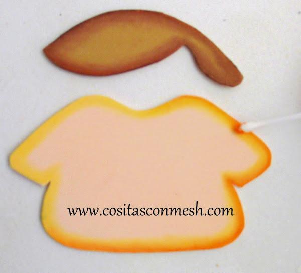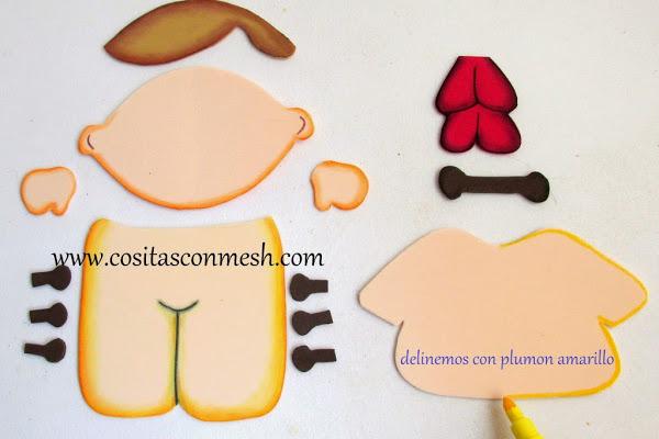 2.-Usare plumón amarillo para delinear en todo el foami color piel.