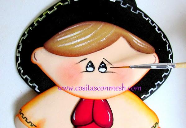 Listo ya esta el muñequito en goma eva ,este mariachi lleva bigotes no te olvides de pegarselo :)