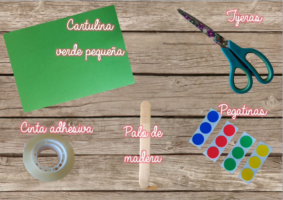 Por último, pegamos el palo de madera atrás con un poco de cinta adhesiva o celofán.