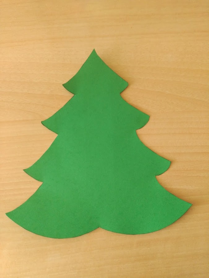 El primer paso es dibujar en la cartulina la figura de un árbol de Navidad. Yo he buscado una en Internet y la he impreso. Después, la recortamos.