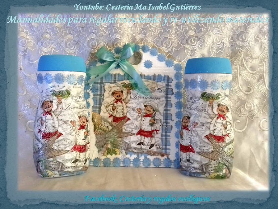 La imagen con la cual decoraremos la tabla y los frascos bien puede ser una servilleta de papel, pero si no consigues, podemos usar papel de regalo con un estampado bonito, o inclusive, imprimir una imagen que nos guste...