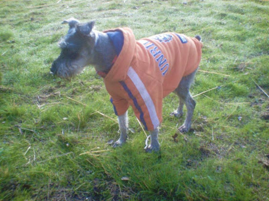 La usuaria Badulake ha fabricado este conjunto para un perro a partir de una sudadera. Abriendo las costuras, introduciremos las patas delanteras y la cabeza. En la parte de abajo ha añadido unas cintas elásticas para que se ciñan al cuerpo sin apretar demasiado. También le ha cosido una capucha.La lectora Acamar ha hecho un abrigo similar con una serie de jerséis de distintos colores. Están hechos en punto respetando el cuello de la prenda y haciendo unas pequeñas aberturas en uno de los laterales por donde introducir las patas delanteras. La parte posterior se corta dejando una malla elástica.