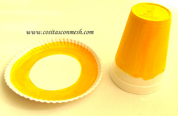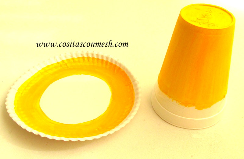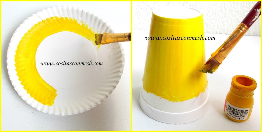 2.-Pinta de amarillo solo una parte del plato, de igual manera pinta el vaso, dejando la parte inferior sin pintar, ya que ahí lo decoraremos de manera muy Mexicana.