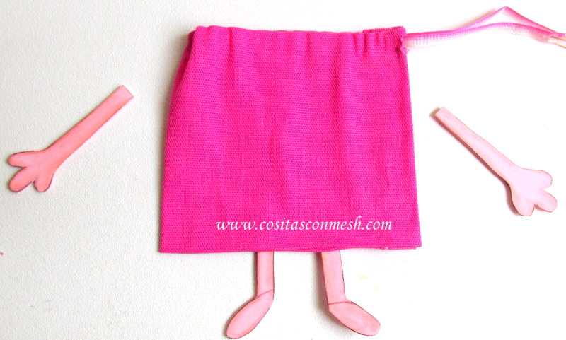 4.-Pega con silicón liquido las manos y pies, estas irán pegadas por atrás.