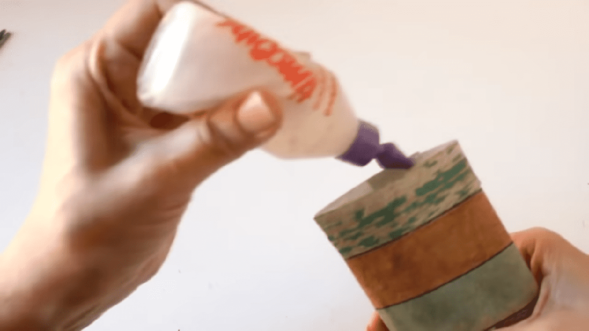 esta vez para forrar el cartón voy a usar cola blanca la voy a aplicar en toda la superficie y después voy a pegar el papel